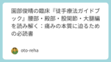 特に、拘縮期のストレッチ強度の注意点は、読後すぐに介入方法の見直しにつながる内容でした。