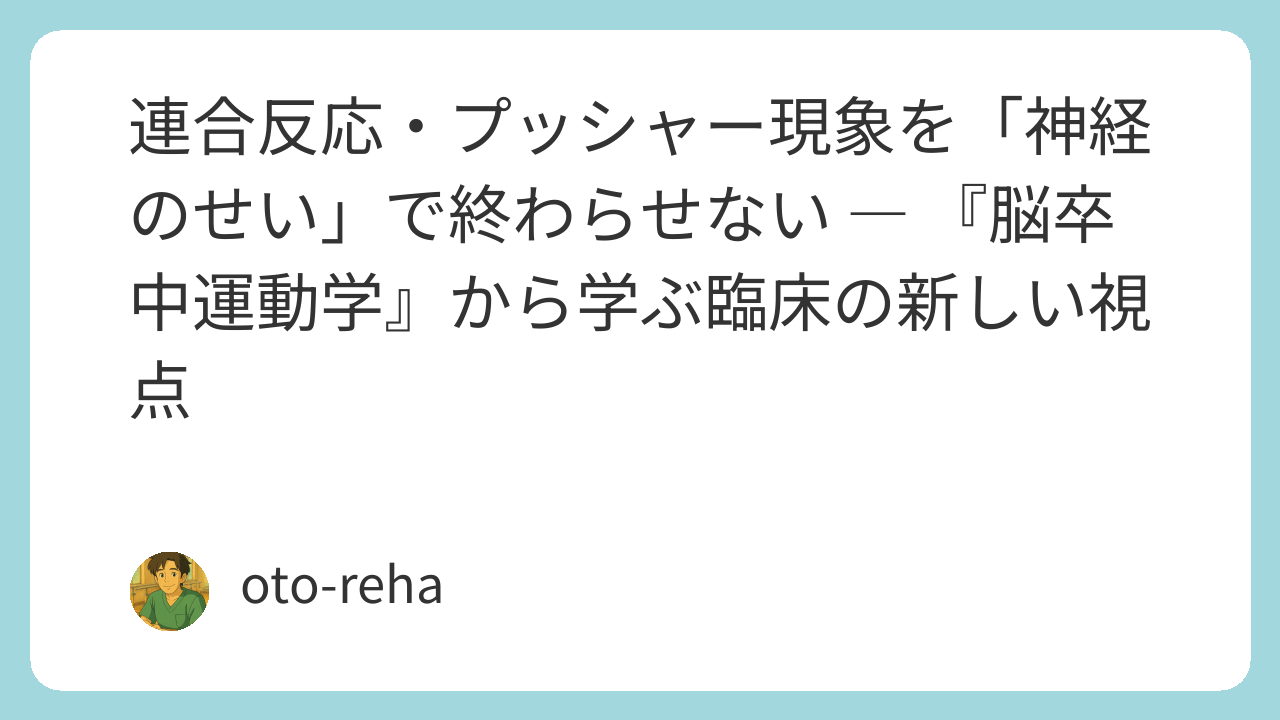 脳卒中患者のリハビリを行っていると、「これは神経症状だから仕方ない」と説明される現象に多く出会います。代表的なのが連合反応やプッシャー現象です。