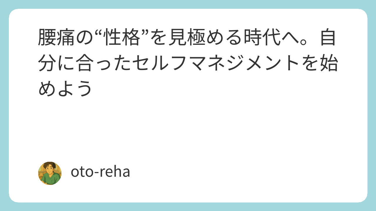 腰痛へのアプローチは、いま“個別化”が求められる時代です。