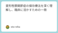 臨床のポイントとして、股関節の柔軟性や胸椎の可動性の低下も併存しやすく、部位を限定しないアプローチが必要と提示されています。