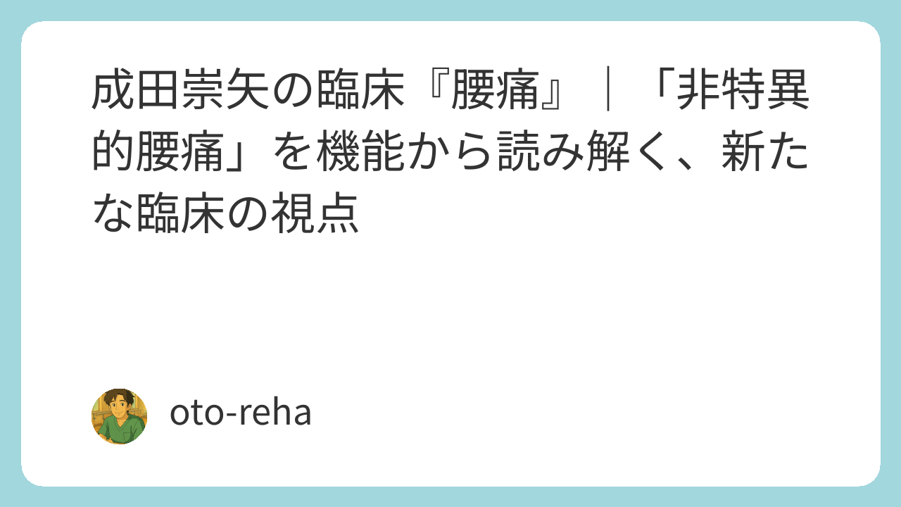 「機能的腰痛」という言葉は、構造的異常だけに頼らず、“患者の動作・姿勢・負荷”を通じて痛みの原因を探るという、リハビリの原点を思い出させてくれます。