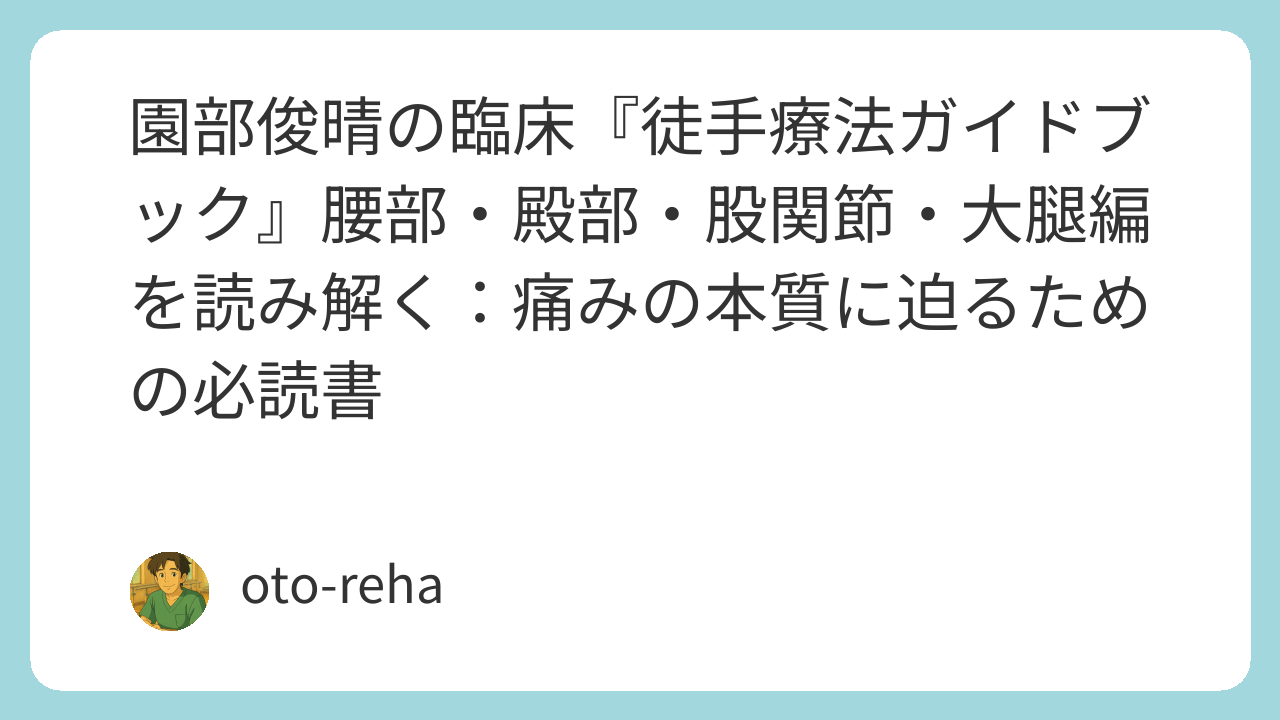 その迷いを体系的にほどき、臨床の判断力を底上げしてくれるのが、園部俊晴氏による『徒手療法ガイドブック』腰部・殿部・股関節・大腿編です。