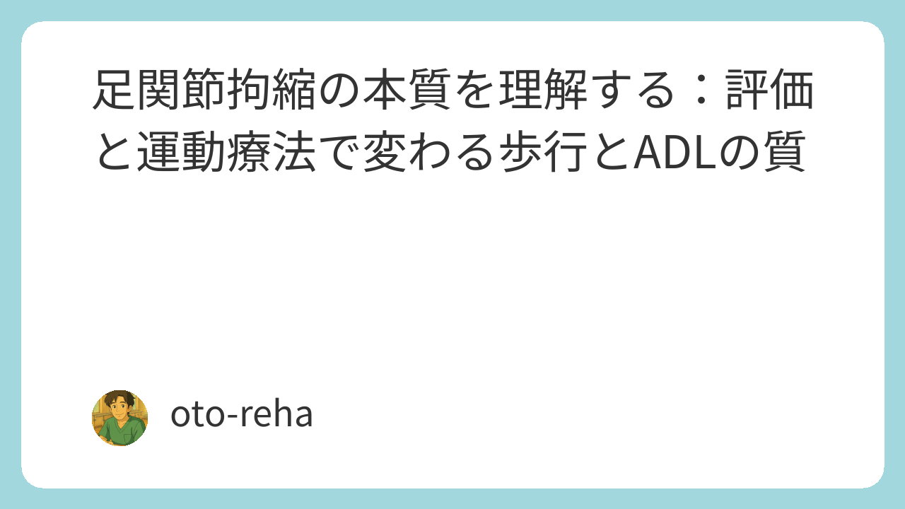 足関節拘縮の評価と運動療法は、患者の歩行能力・立位バランスを左右する重要なテーマです。